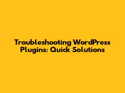 Troubleshooting WordPress Plugins: Quick Solutions
