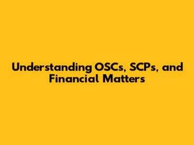 Understanding OSCs, SCPs, And Financial Matters