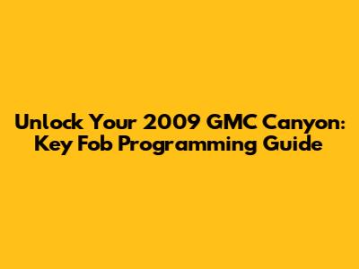 Unlock Your 2009 GMC Canyon: Key Fob Programming Guide
