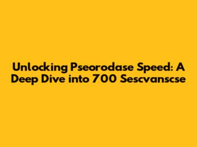 Unlocking Pseorodase Speed: A Deep Dive Into 700 Sescvanscse
