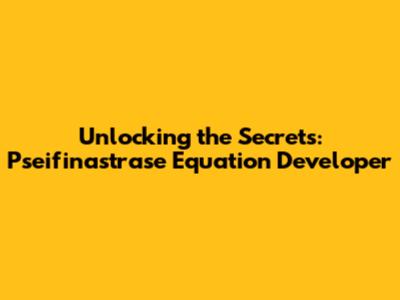Unlocking The Secrets: Pseifinastrase Equation Developer