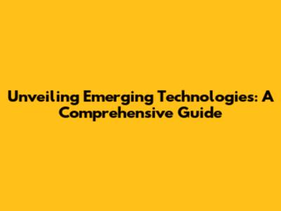 Unveiling Emerging Technologies: A Comprehensive Guide