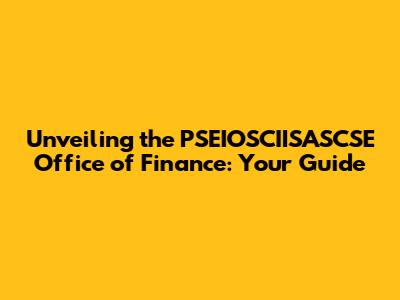 Hey everyone! Today, we're diving deep into the PSEIOSCIISASCSE Office of Finance. I know, the name might seem a bit of a mouthful, but trust me, understanding this office is super important, especially if you're involved in financial activities. Think of it as a key player, a central hub, in the complex world of finance. This guide will break down everything you need to know about the PSEIOSCIISASCSE Office of Finance, from its core functions to its impact on the wider financial landscape. We'll explore its role, the services it provides, and why it matters to you, whether you're an individual investor, a business owner, or simply someone curious about how money moves around. Let's get started, shall we?