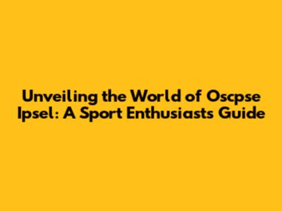 Unveiling The World Of Oscpse Ipsel : A Sport Enthusiast's Guide